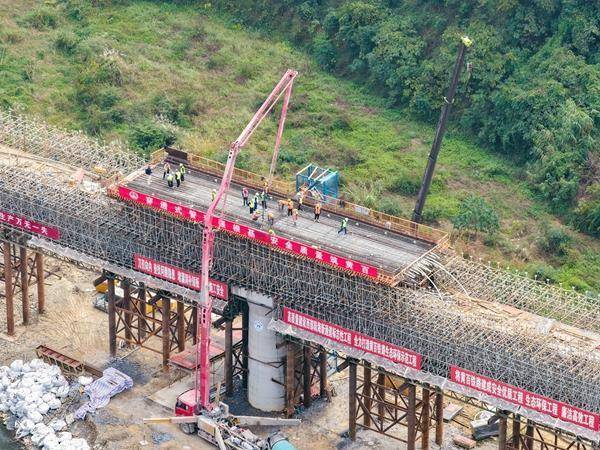 施工人员正在对连篆1号特大桥连续梁进行浇筑。莫小斌摄