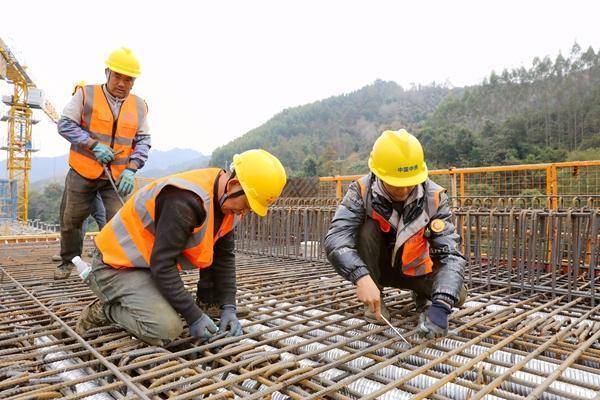 施工人员正在对连篆1号特大桥连续梁进行钢筋绑扎作业。莫小斌摄